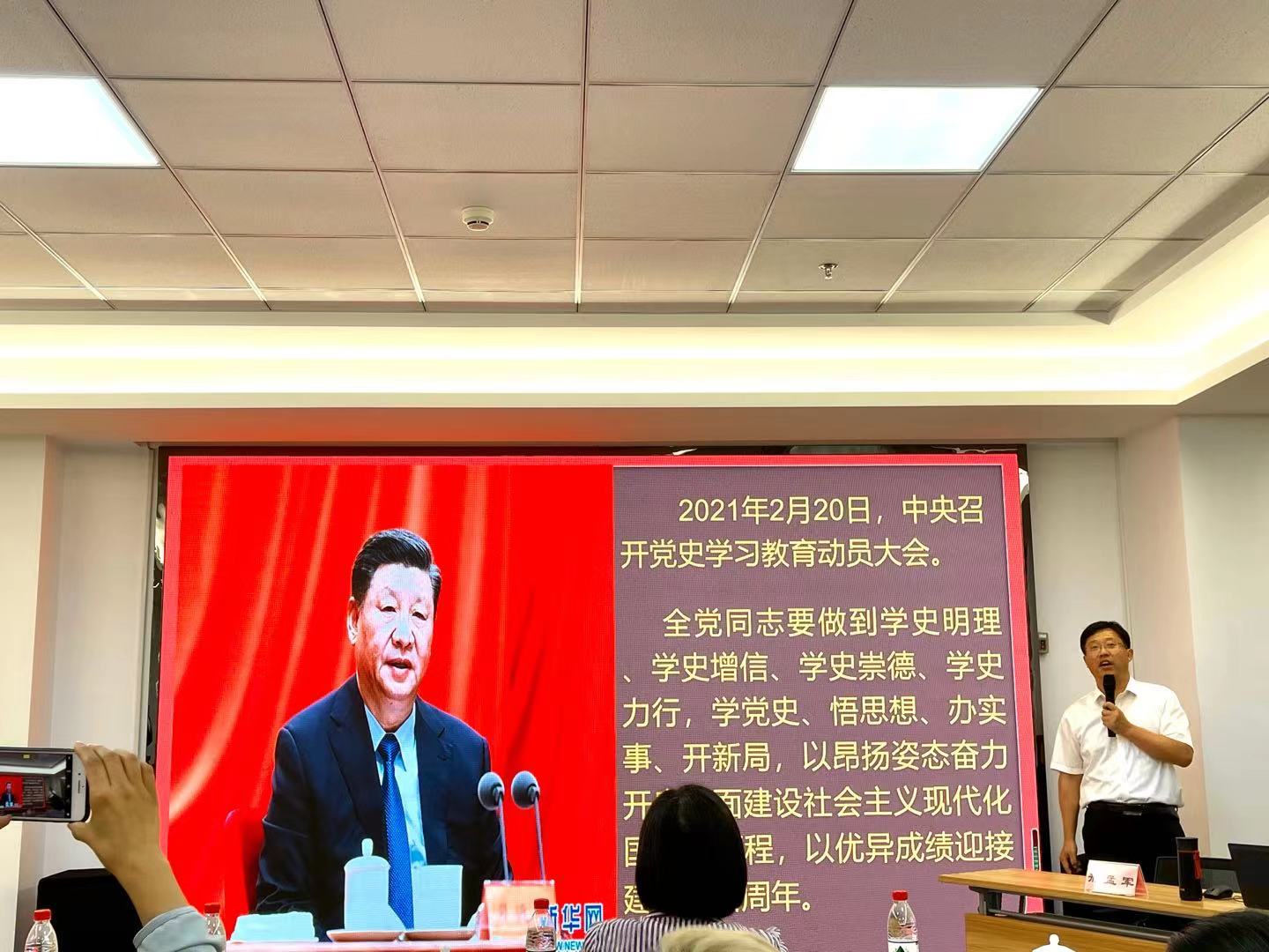 活动上,邢主任围绕“为什么要开展党史学习教育?”“开展党史学习教育,要学习哪些内容?”“怎么样开展党史学习教育?”三个问题展开,将中国共产党波澜壮阔的百年历史细细讲述。邢主任勉励道,我们要通过党史学习教育,真正做到学有所思,学有所悟,学有所得,更加紧密地团结在以习近平同志为核心的党中央周围,不忘初心、牢记使命,听党话,跟党走,用忠诚和实干庆祝党的百年华诞,创造更加美好的未来。