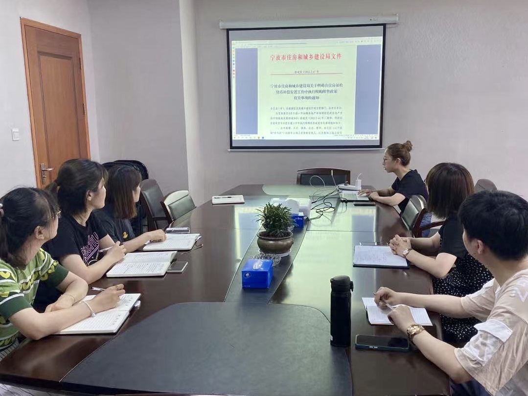 会上,大家集中学习了《宁波市住房和城乡建设局关于明确在住房征收货币补偿安置工作中执行限购限售政策有关事项的通知》(甬建发【2021】47号)文件精神和相关政策解答,对新政有了更加深入的理解。