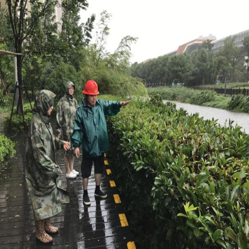 针对即将登陆的“烟花”,各小区内提前备置了充足的防汛沙袋、挡水板等物资,汛情一旦出现,抢险救援组就会第一时间调动防汛沙袋对地库进水口实施封堵。各小区树木再次加固,防止倾倒;公共区域门窗依次关闭,减少雨水侵袭;对雨篦子、排水沟渠进行全面清掏工作,确保排水通畅,防止积水成涝;除了对地面沟渠的清掏,地下排水位的观测,同时对天台、设备平台的杂物进行了统一的清理,防止台风天里高空坠物对业主的人身、财产造成损失。安全员们提前引导业主车辆行驶至指定的安全停放位置,为台风登陆可能引发的汛情做好准备。