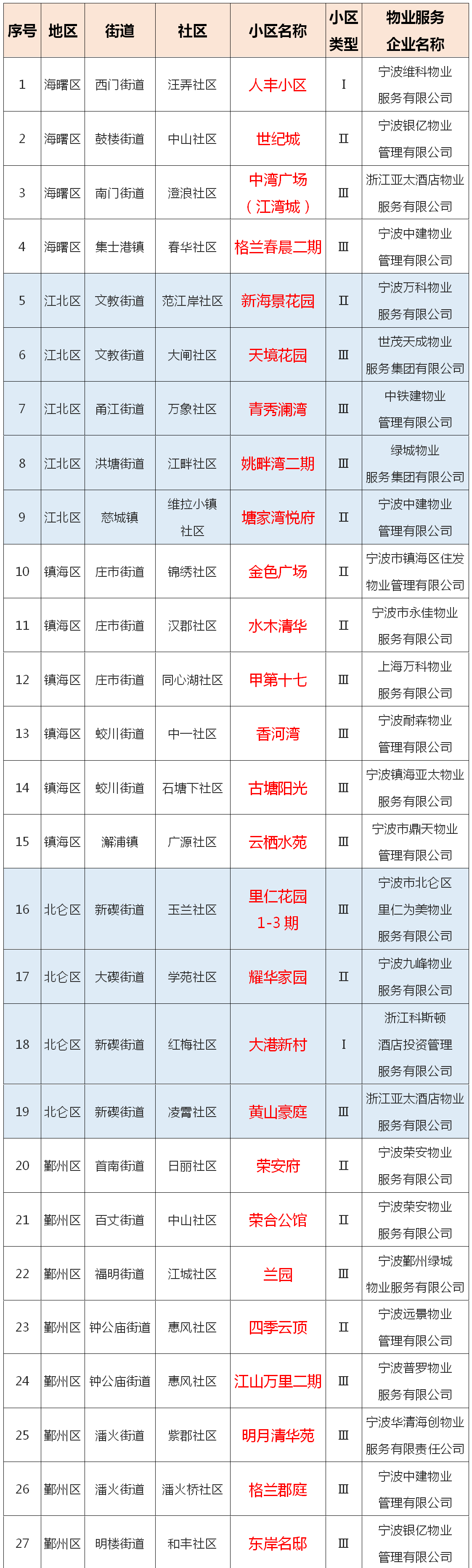 宁波市住建局2月8日起公示全市2021年度“洁美小区”(59个)名单,以及2021年度特色物业服务项目部名单——包括维修无忧项目部(53个)、绿色生态项目部(55个)、智慧服务项目部(38个)。据悉,以上名单经物业服务企业申报,结合属地实地测评、日常监管情况择优推荐,市住建局再根据各地推荐情况,对申报项目进行抽查或检查,完成综合核定后形成。