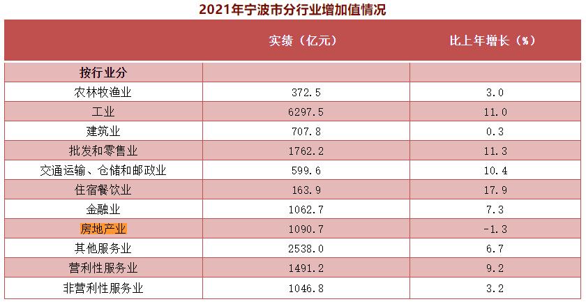 2月23日宁波市统计局、国家统计局宁波调查队发布了《2021年宁波市国民经济和社会发展统计公报》。公报中显示我市房地产业2021年实绩1090.7亿元,比上年增长-1.3%;市区CPI居住类消费价格指数为100.8;房地产投资比上年增长14.1%。